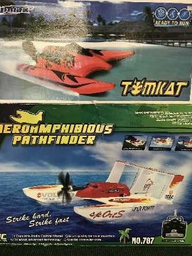 A boxed remote controlled Tom-cat together with an amphibious path finder