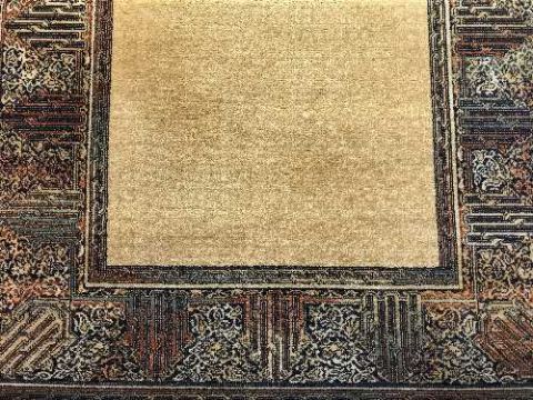 A contemporary woolen rug on blue ground