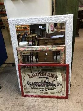 A painted floral framed, gilt framed mirror and Louisiana Steam Boat Company picture mirror