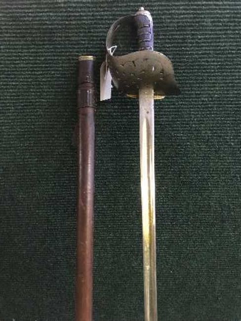 An 1897 pattern infantry sword in leather scabbard by Wilkinson of Pall Mall, London