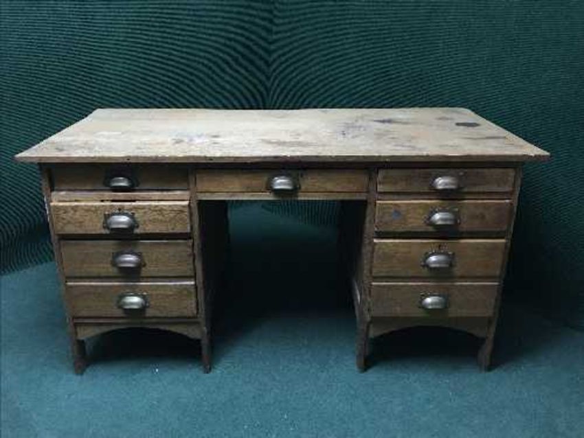 An early 20th century oak twin pedestal desk