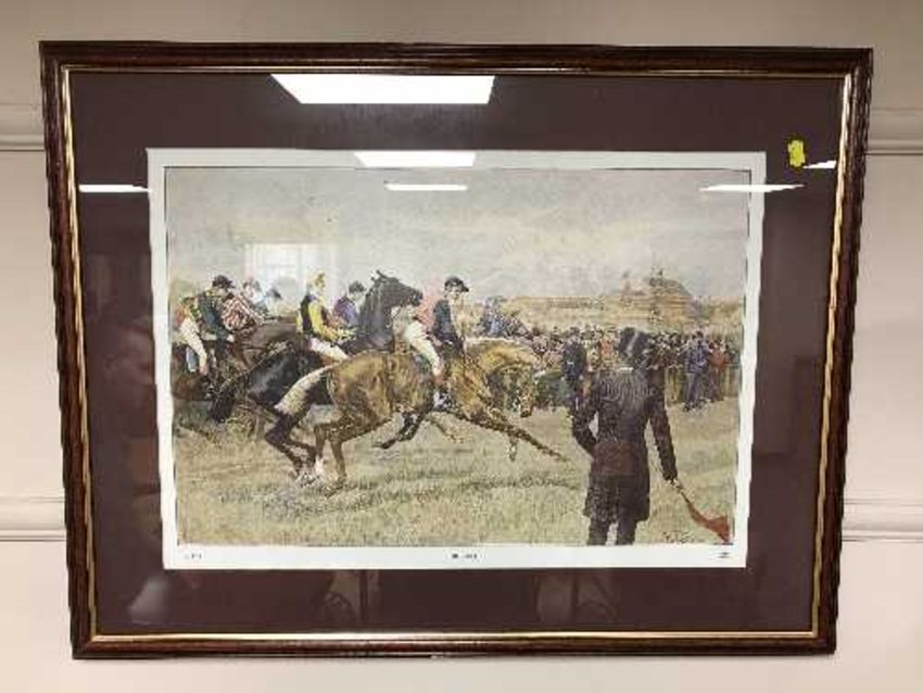 A colour print - The Derby, framed.