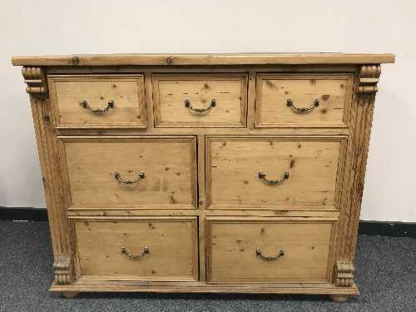 An antique style seven drawer pine chest