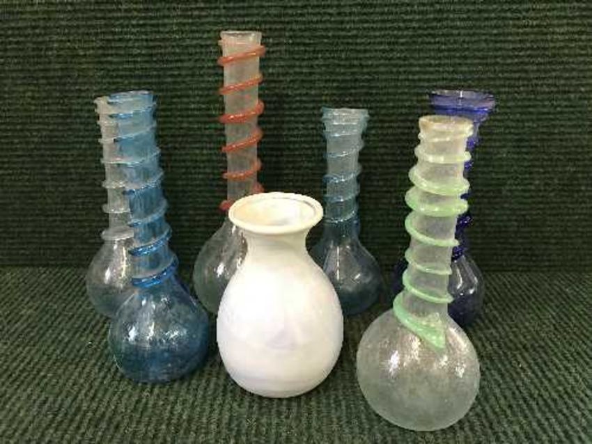 Six antique hand blown Turkish glass vases together with one other piece of glass.