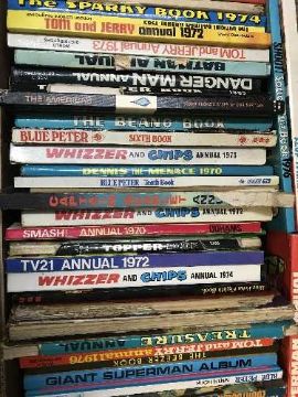 A box of annuals including Man from Uncle, Tom & Jerry, Superman etc