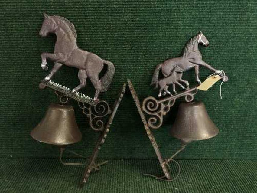 Two cast metal wall brackets with bells - horses (2)