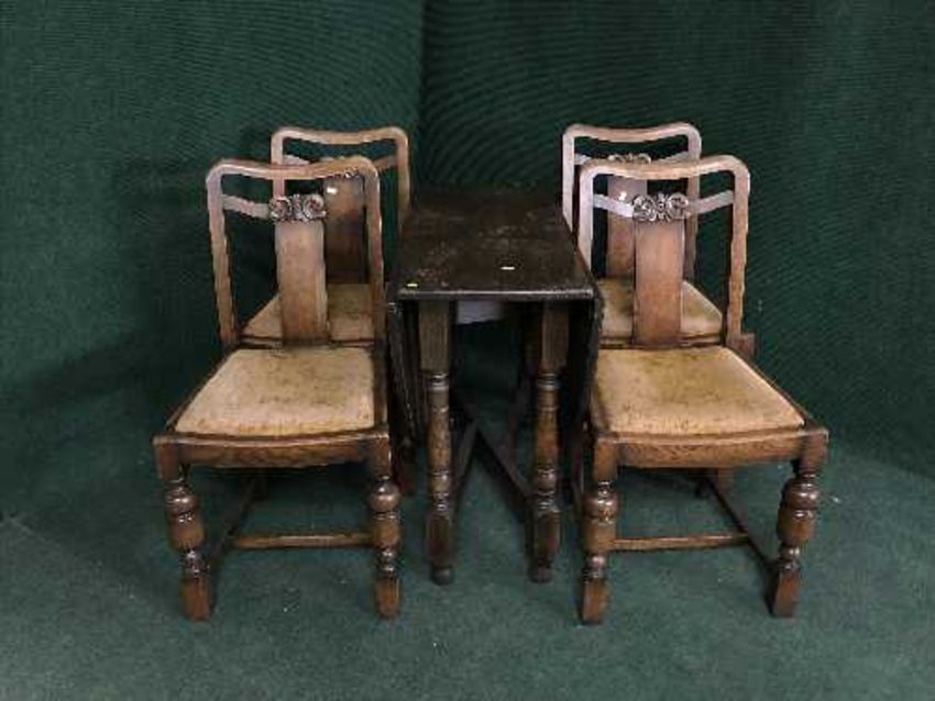 An oak gate leg table and four chairs