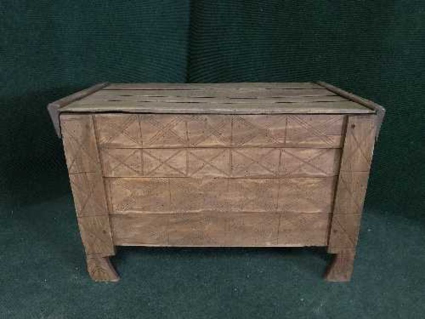A rustic pine hay bin