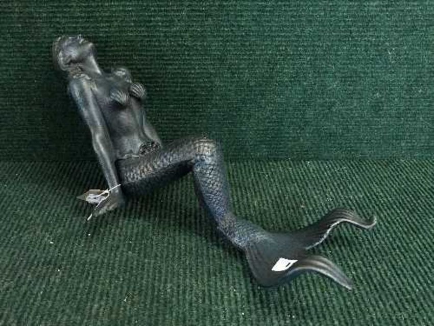 A cast metal figure - seated mermaid