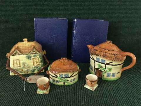 A tray of five pieces of cottage ware and two volumes : The Family Physician