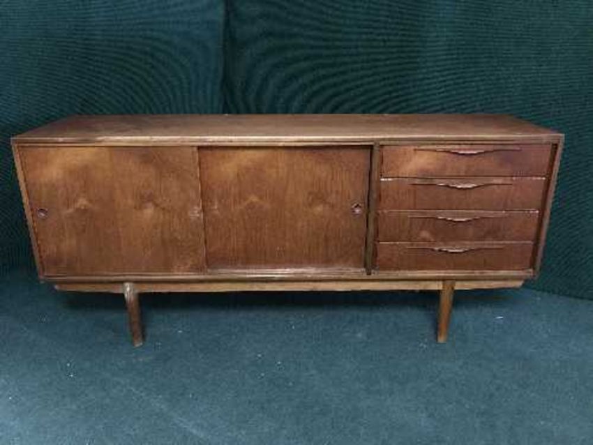 A mid twentieth century teak sliding door sideboard fitted with four drawers
