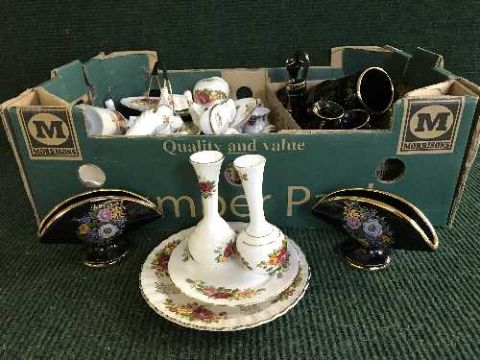 Four boxes of tea china, ornaments, vases etc