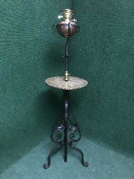 A wrought iron based oil lamp