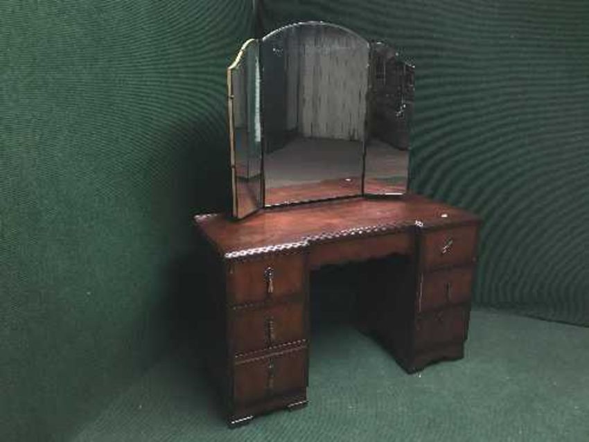 A mahogany mirror backed dressing table