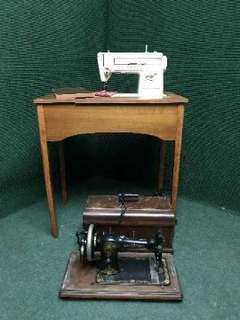 A Singer sewing machine in case and cased machine