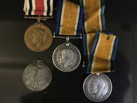 A First World War Trio comprising British War Medal, Victory Medal and Special Constabulary Long Service Medal, named to 154795 SPR. W. McOuiston. R.E. Together with a British War Medal, named to 2281 PTE. J. Cartwright. Notts. & Derby. R.