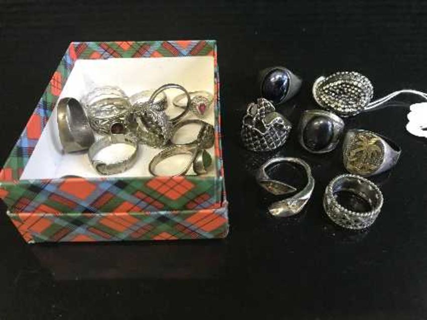 A collection of silver dress rings