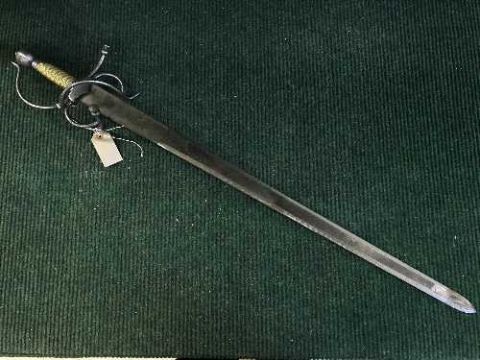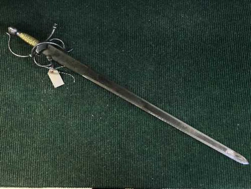 A double edged sword with basket hilt