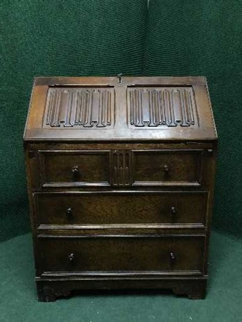 An oak bureau fitted three drawers