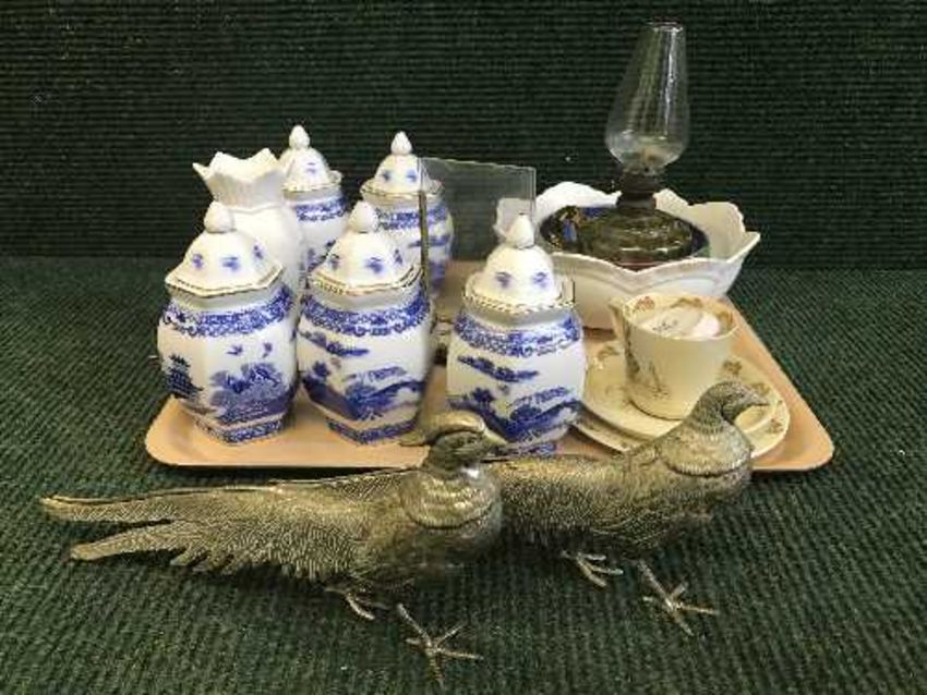 A tray of Ringtons caddies, Aynsley vase, Maling bowl etc