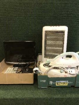 A Wharfedale LCD TV, Bosch steam iron system and a heater
