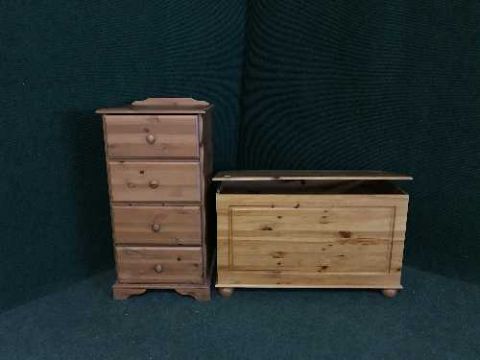 A pine four drawer chest and a pine blanket box