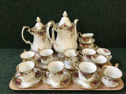 A tray of twenty four pieces of Royal Albert Old Country Roses tea china