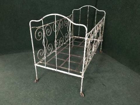 An antique metal child's cot