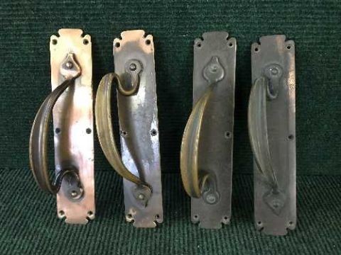 Four copper Art Nouveau door handles