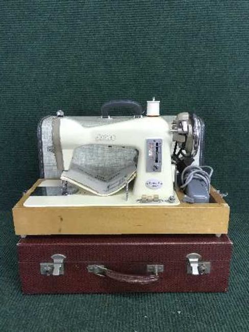 A Jones electric sewing machine and part cased picnic set