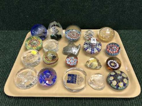A tray of twenty glass paperweights