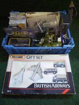 A basket of assorted die cast air craft - British Airways Concorde set, Corgi 100 years of flight global traveller etc