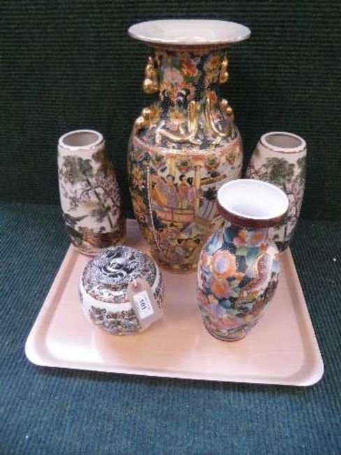 A tray of four twentieth century Chinese vases together with a lidded ginger jar