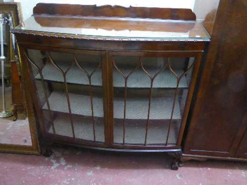 A mahogany double door display cabinet on claw and ball feet