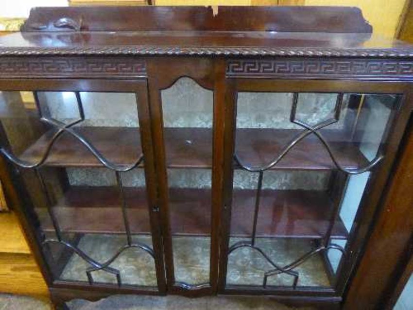 A mahogany double door display cabinet on claw and ball feet