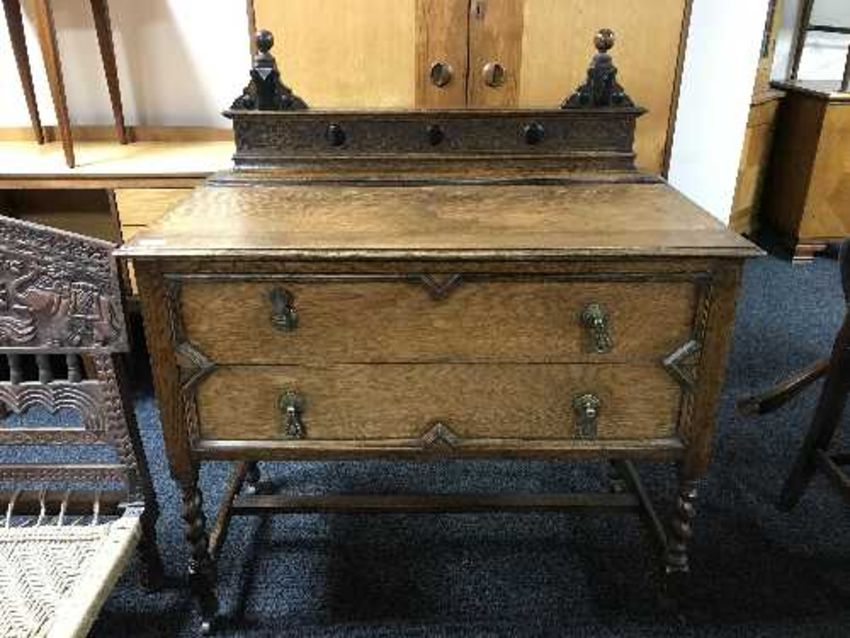 An early 20th century barley twist two drawer chest