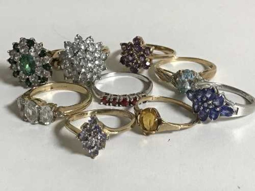 Nine various gold stone set rings, gross weight 22.8g