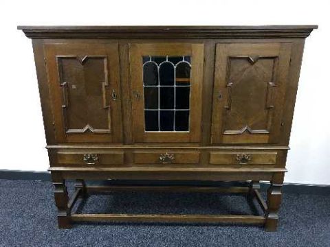A continental oak triple door sideboard fitted with three drawers
