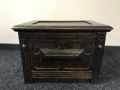 An Edwardian oak coal receiver with liner