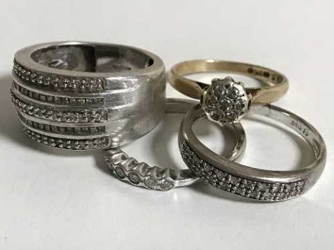 Four various 9ct gold rings, all set with diamonds, gross weight 13.3g