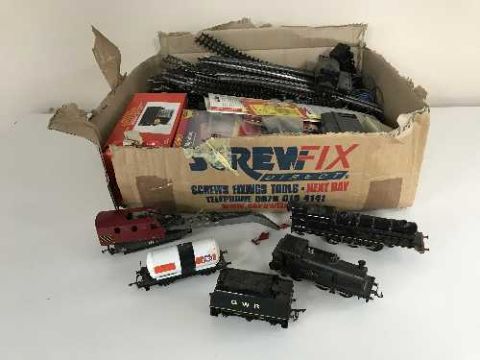Two boxes of Hornby track, rolling stock and accessories