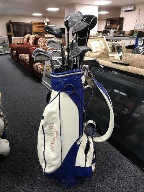 A Houwsen golf bag of Tour Classic irons, Dunlop drivers etc