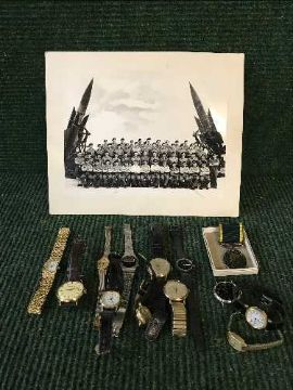 A territorial efficiency service medal with ribbon together with accompanying photograph and a quantity of lady's and gent's wrist watches