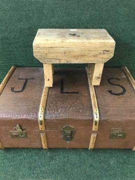 A mid twentieth century wooden bound trunk together with a pine cracket