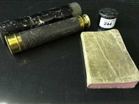 A First World War naval telescope in protective case, together with a soldier's prayer book (2)