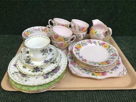 A tray of twenty piece Tuscan September song tea service, Royal Albert plates and trio etc