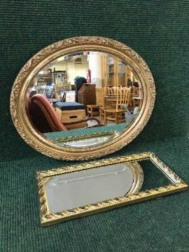 Three gilt framed mirrors together with an octagonal framed mirrors