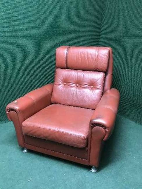 A red buttoned leather three seater settee with matching armchair