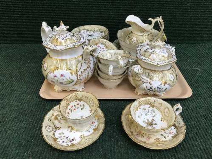 A tray of thirty piece Victorian cream and gilt tea service