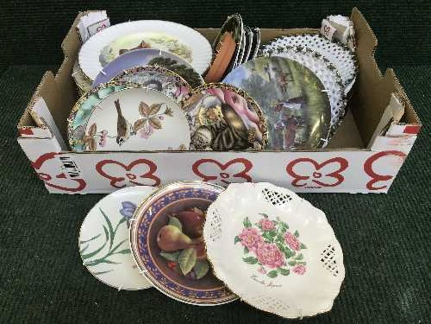Two boxes of collector's plates, wall plaques etc